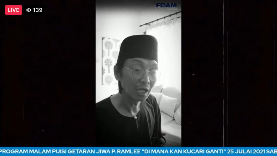 Malam Puisi Getaran Jiwa Tan Sri P. Ramlee disiarkan secara langsung selama dua jam mulai pukul 9.00 malam menerusi Facebook DBP, PEMUISI BERKARYA dan FDAM.