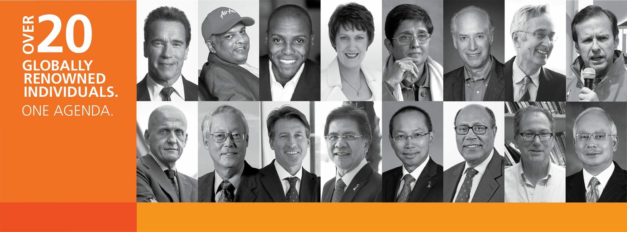 Menurut laman rasmi GTF di Facebook, Schwarzenegger bersama 20 individu lain akan berkongsi pentas termasuk Ketua Pegawai Eksekutif Kumpulan AirAsia, Tan Sri Tony Fernandes; bekas pelari pecut dunia yang pernah memenangi 10 pingat sukan Olimpik, Carl Lewis; bekas perdana menteri Singapura, Goh Chok Tong dan Perdana Menteri Malaysia, Datuk Seri Najib Razak.