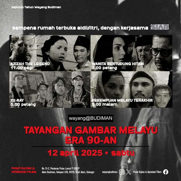 Bagi peminat filem Melayu, ke semua filem tersebut dapat ditonton semula menerusi tayangan secara percuma yang diadakan di pusat komuniti filem Wayang Budiman, Alam Budiman, Shah Alam, Selangor pada hari ini (12 April 2025). Sesi tayangan bermula jam 11 pagi menerusi filem Azizah The Legend diikuti Wanita Bertudung Hitam (2 petang), XX Ray (5 petang) dan Perempuan Melayu Terakhir (9 malam).