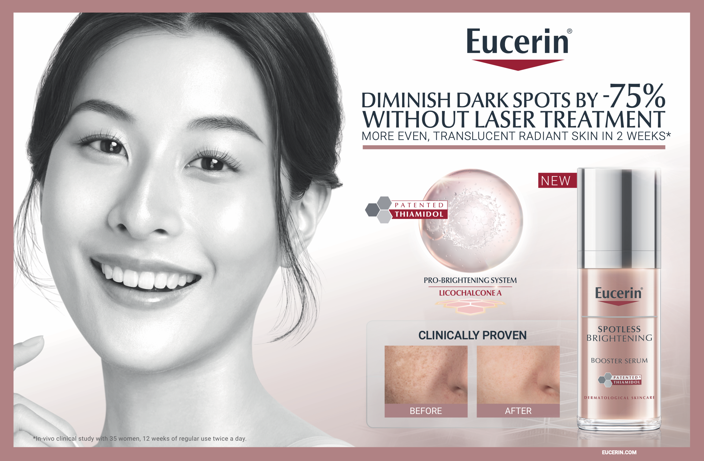 Bagi meraikan kejaayan lebih 100 tahun dalam inovasi penjagaan kulit, Eucerin memperkenalkan produk berteknologi tinggi terbaharu, Eucerin Spotless Brightening Booster Serum yang mempunyai Thiamidol yang dipatenkan dan Pro-Brightening System.
