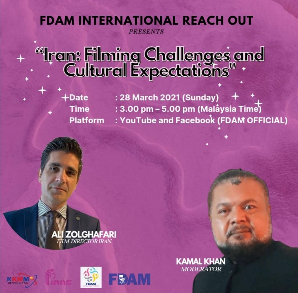 Persatuan Pengarah Filem Malaysia (FDAM) kembali menganjurkan program bertaraf antarabangsa menerusi ‘reaching out’ apabila kali ini menampilkan produser filem dari Iran iaitu Ali Zolfaghari.