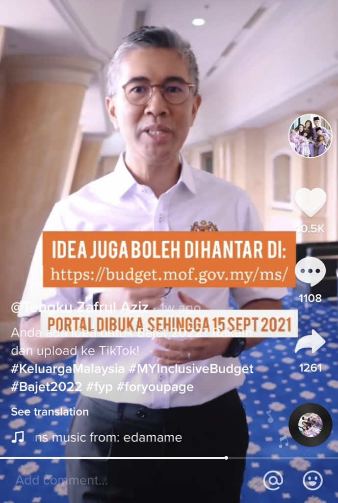 Hantar cadangan Bajet 2022 ke TikTok
