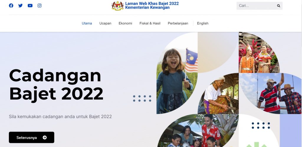 Orang ramai boleh menghantar pandangan dan cadangan menerusi Laman Web Khas Bajet 2022 Kementerian Kewangan di sini.