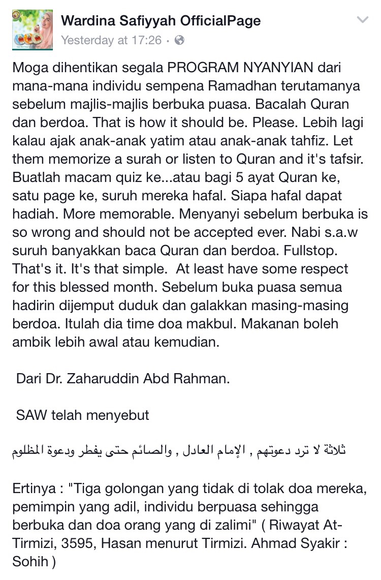 Namun, teguran personaliti Wardina menerusi akaun Facebooknya mempunyai kebenaran.