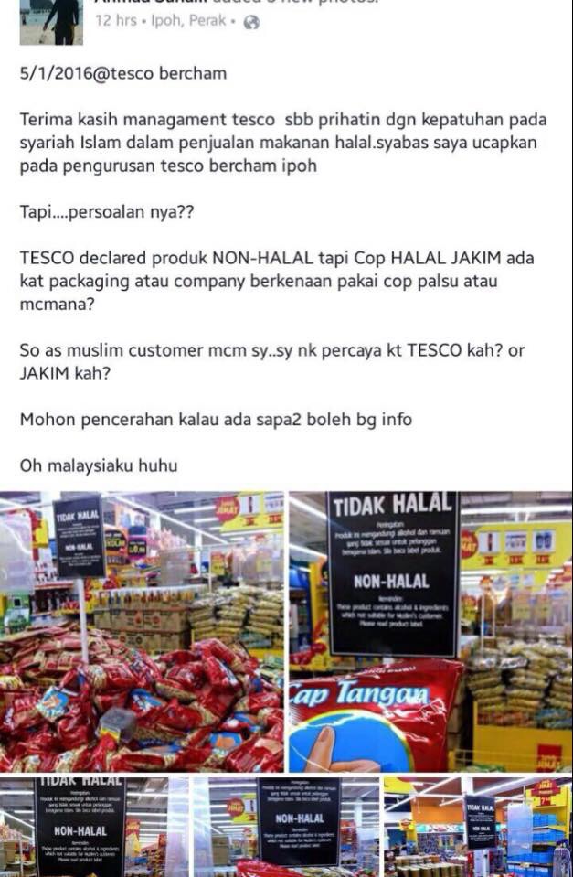 Beberapa produk makanan yang kebiasaanya dimakan masyarakat Islam menimbulkan persoalan apabila sebuah pasaraya meletakkan papan tanda yang mengatakan ia adalah produk tidak halal.