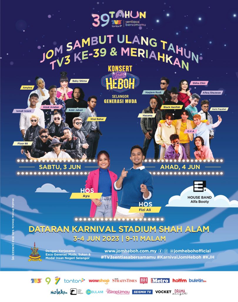 Acara padang paling lama di Malaysia, Karnival Jom Heboh (KJH) kembali menemui peminat dan pengunjung pada tahun ini. Lokasi pertama untuk edisi tahun 2023 menyaksikan Karnival Jom Heboh Selangor Generasi Muda akan diadakan dan lebih istimewa, acara ini turut meraikan sambutan ulang tahun TV3 ke-39.