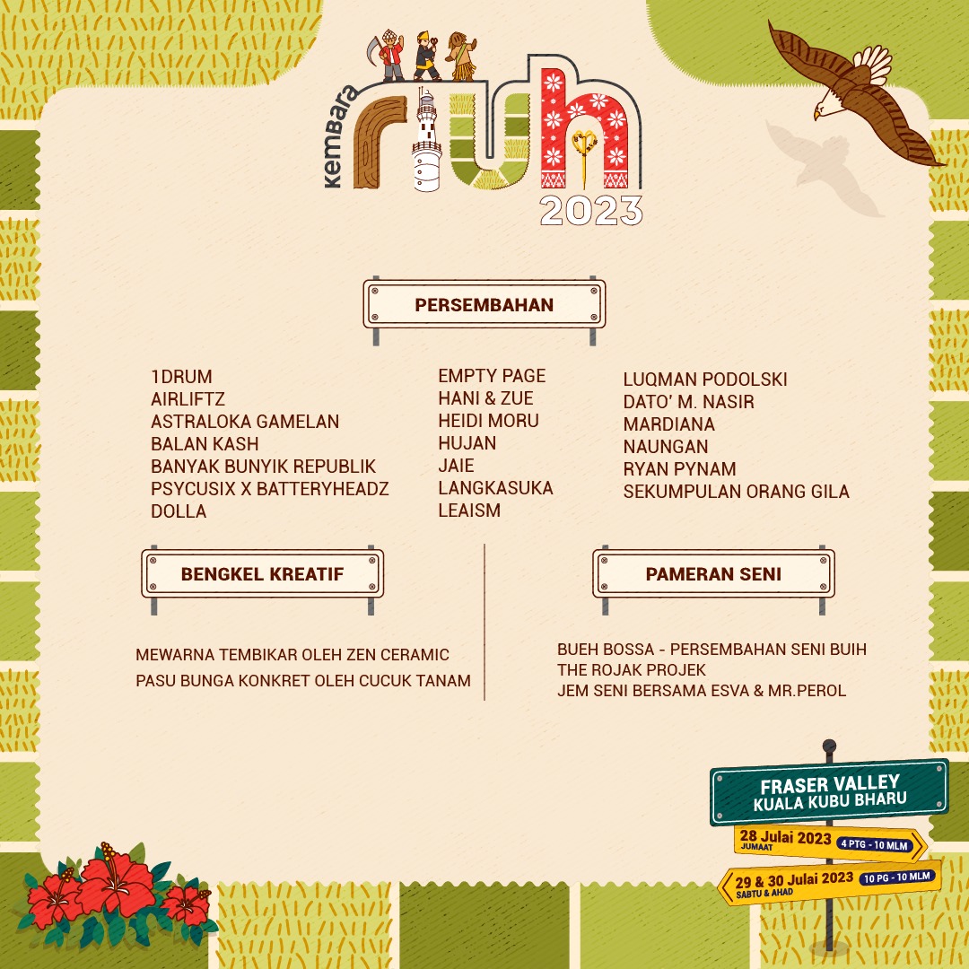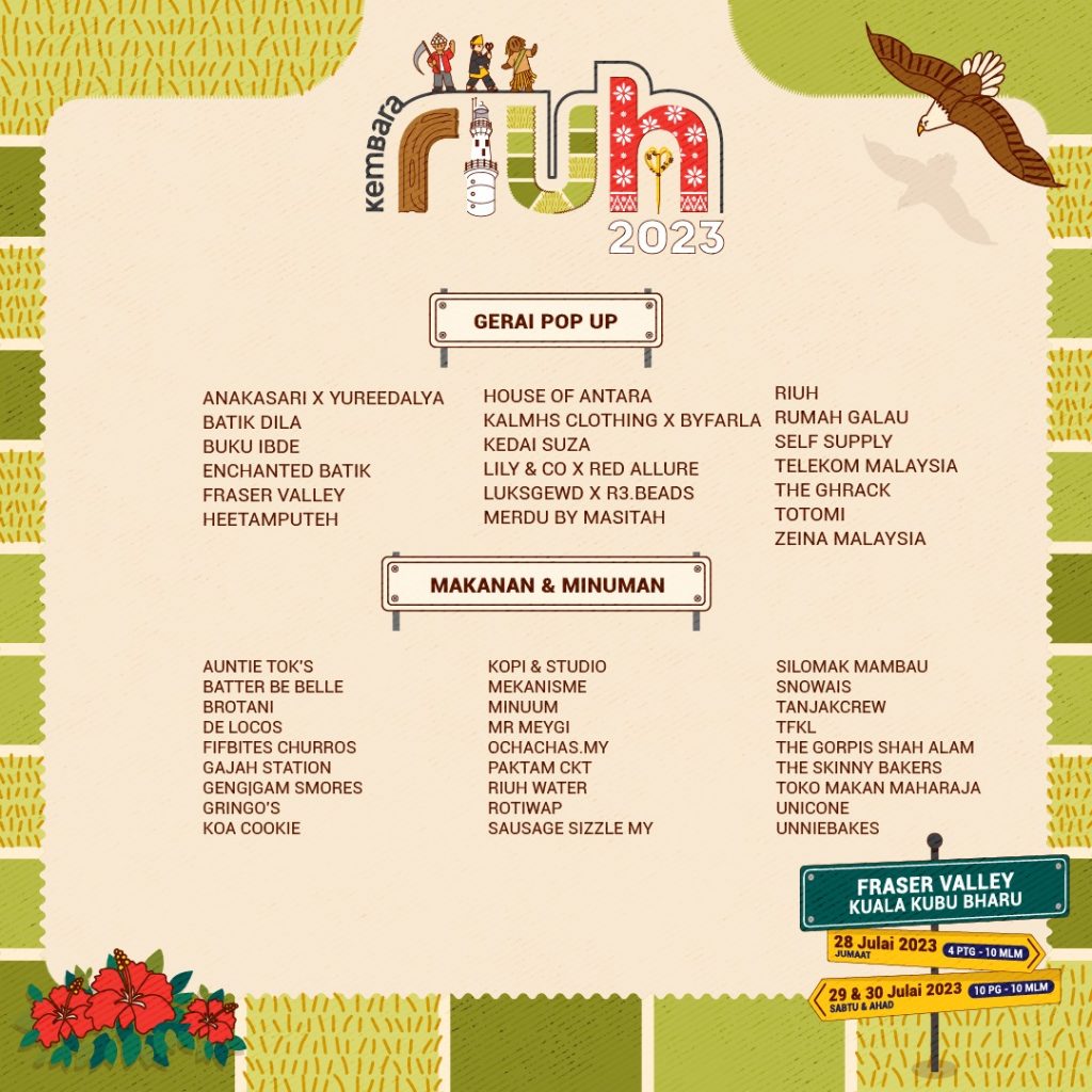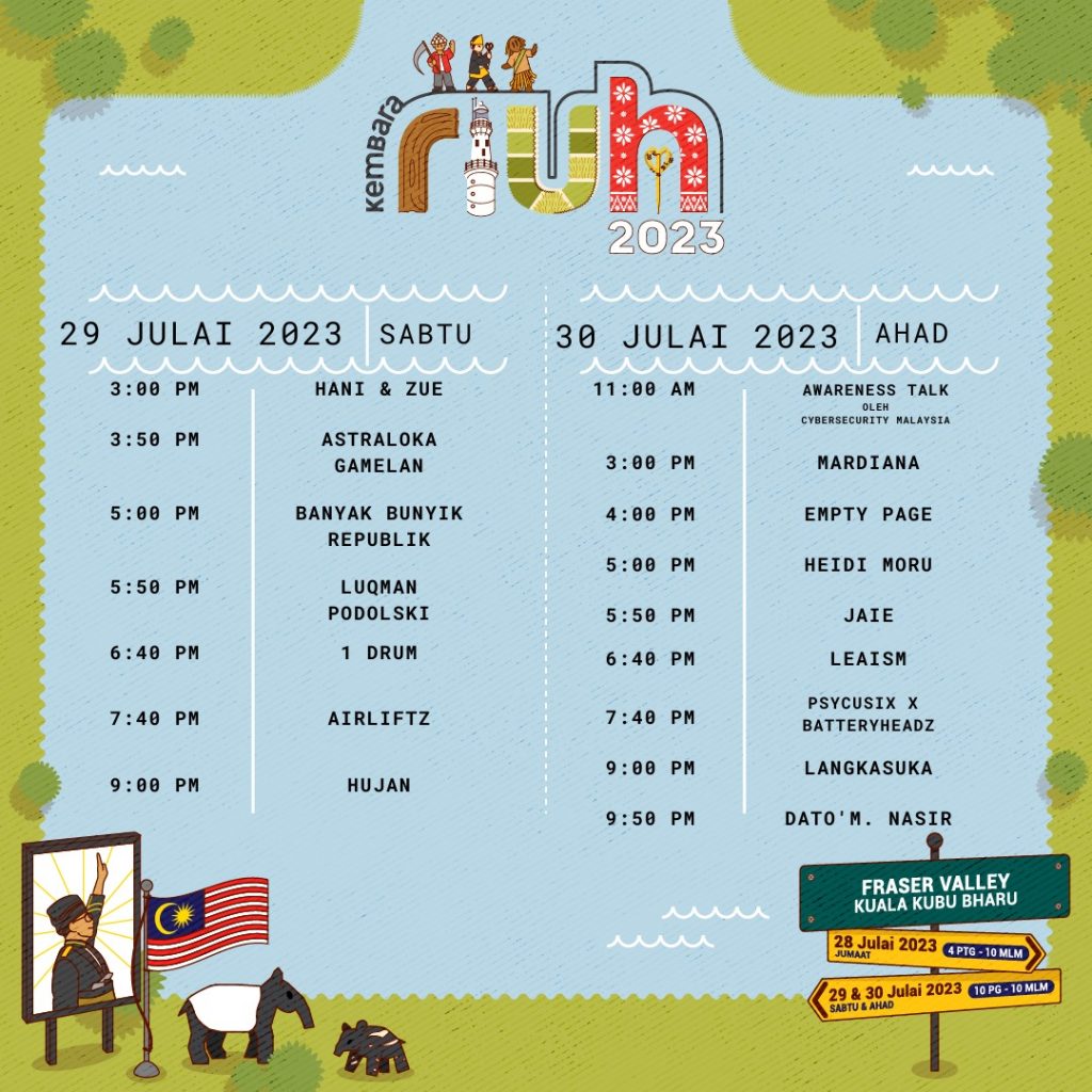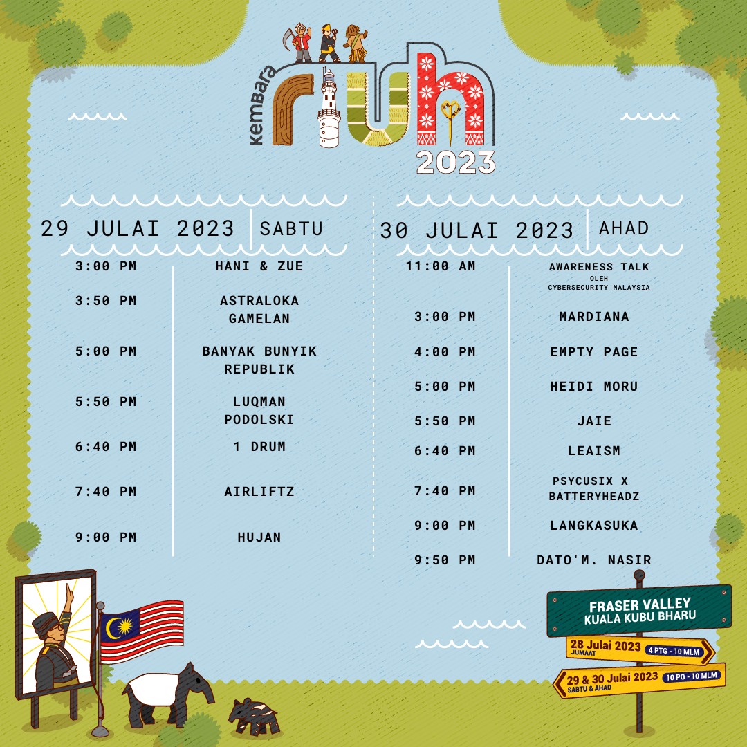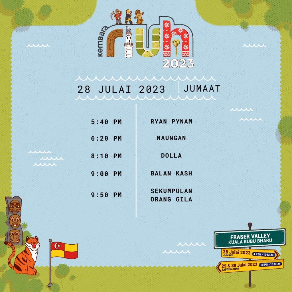 Kembara RIUH 2023 Edisi Selangor akan bermula jam 4 petang hingga 10 malam esok manakala acara pada 29 dan 30 Julai 2023 bermula jam 10 pagi hingga 10 malam. Sebarang maklumat lanjut boleh melayari Instagram rasmi @riuhinthecity.