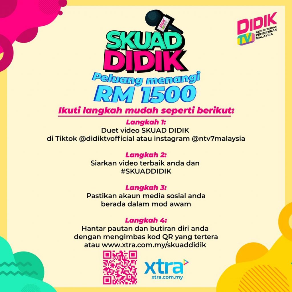 Peserta diingatkan memastikan akaun media sosial sendiri dalam mod awam dan hantar pautan bersama butiran peribadi di kod QR atau www.xtra.com.my/skuaddidik .