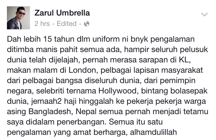 Apa yang peminat tahu, penyanyi berusia 42 tahun itu sudah lama menyepikan diri daripada bidang nyanyian kerana komitmen sebagai pramugara Penerbangan Malaysia (MAS).