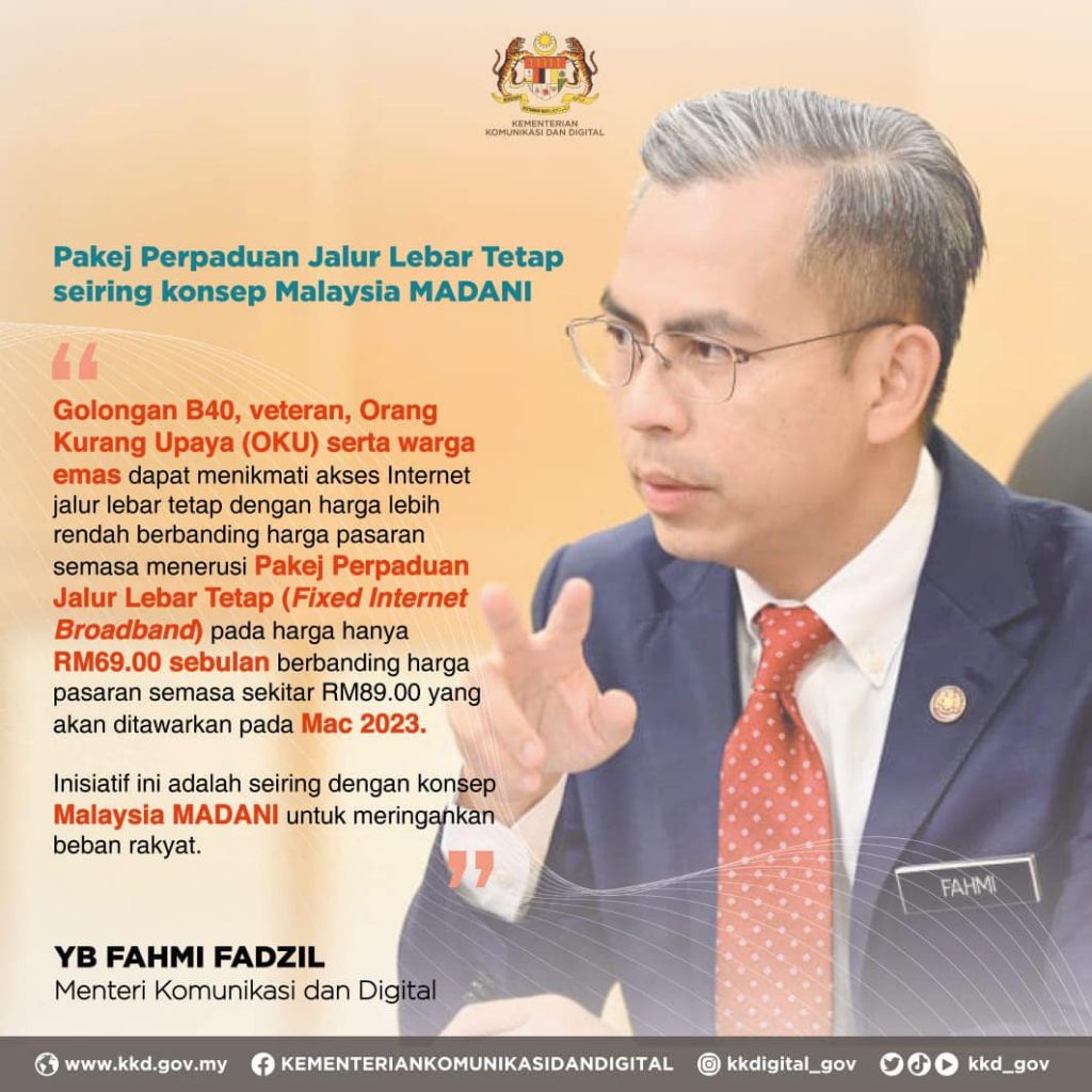 Fahmi yang juga Ahli Parlimen Lembah Pantai berkata, tarikh 3 Februari 2023 bermakna beliau genap 2 bulan menggalas tanggungjawab sebagai Menteri Komunikasi dan Digital. Sehingga kini beliau membuktikan dirinya boleh buat kerja dengan pantas termasuk menyelesaikan isu harga Internet membabitkan pakej perpaduan prabayar mudah alih dan talian tetap.