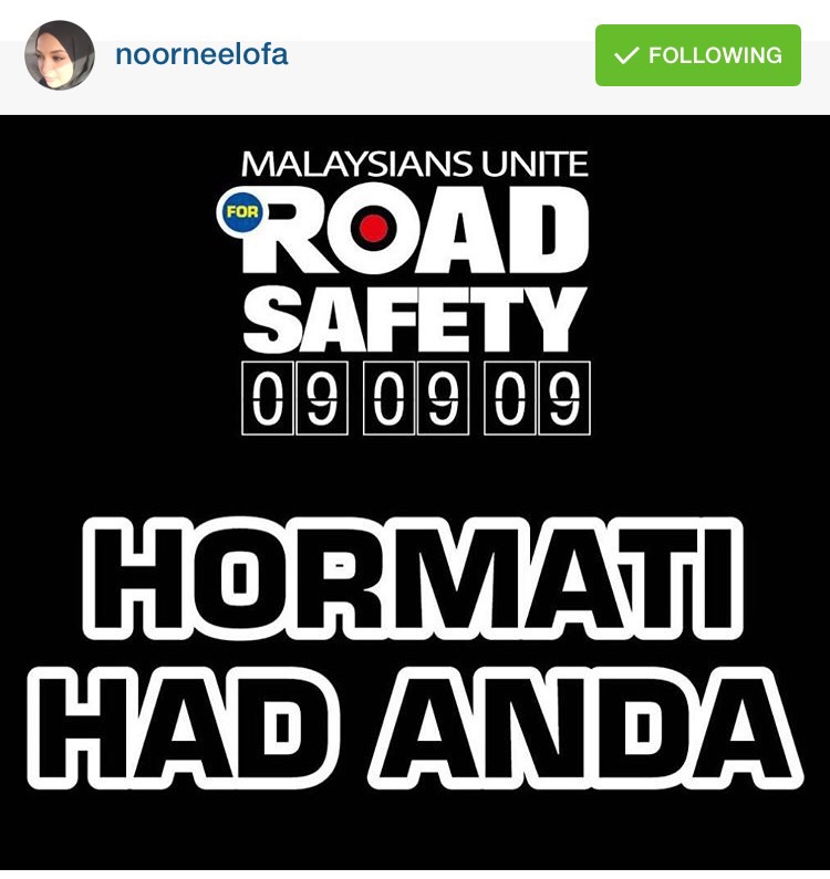 Sebagai langkah kesedaran, pelakon dan pengacara jelita, Neelofa turut meluahkan pandangannya terhadap banyak kemalangan membabitkan kenderaan berat seperti lori pada masa kini.