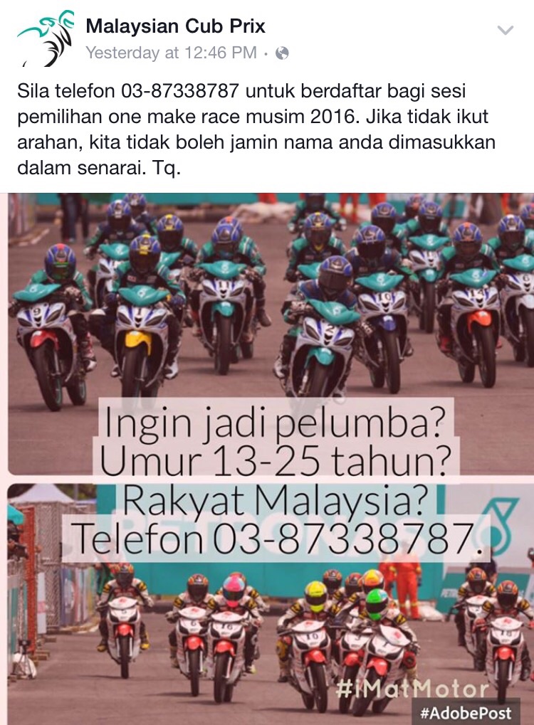 Berita gembira buat penunggang motosikal khususnya mat rempit yang minat berlumba boleh mencuba nasib sertai sebagai pelumba profesional.