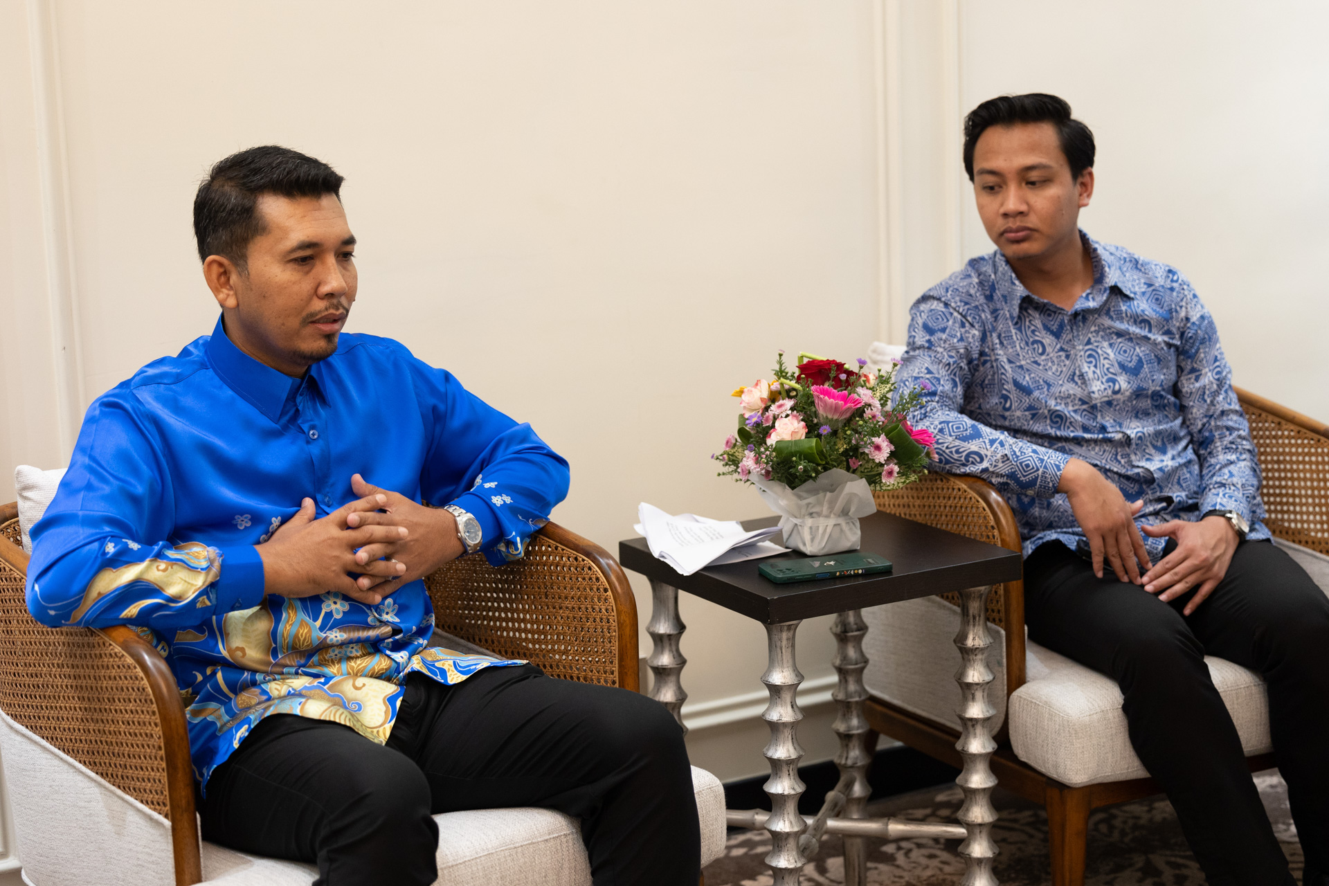 Mohd Khurulanuar (kiri) bersama Fahmi Zainol pada sidang media selepas Majlis Pelancaran Koperasi Eksklusif Emas Anuar Berhad (KEMASA) di Kepala Batas, Pulau Pinang, baru-baru ini. (Foto: KEMASA)