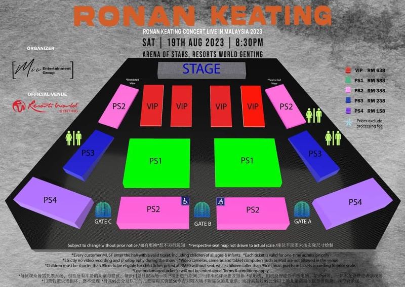 Lokasi tempat duduk penonton Ronan Keating Concert Live in Malaysia 2023.