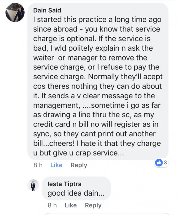 Caranya pelanggan itu sendiri memberitahu pada pihak restoran itu agar tidak mahu membayar caj perkhidmatan yang dikenakan kerana tidak berpuas hati dengan layanan yang diberikan.