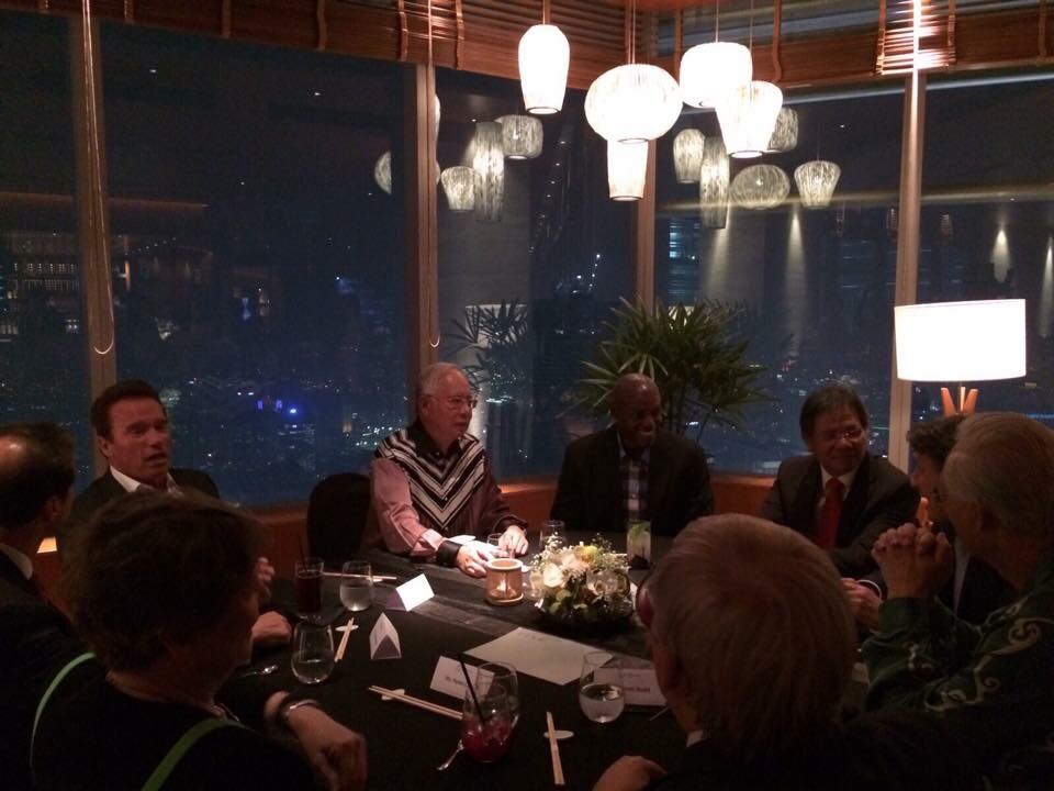 Najib juga berkongsi foto majlis itu menerusi Facebooknya dan kelihatan Schwarzenegger duduk di sebelahnya.